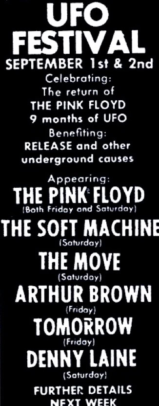 CONCERT DATE | 1 September 1967 « UFO Festival », The Roundhouse, London, England
