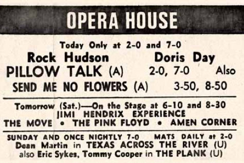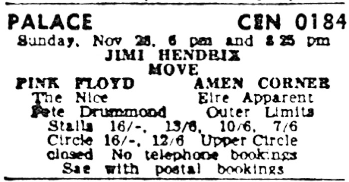 «What a boring load of rubbish the Pink Floyd turned out to be on the tour with Jimi Hendrix. All those stupid lights and painful noises made me sick. If anything can kill pop music it’s this sort of insulting non-sense. Thank God some people had the sense to jeer and handclap their puerile «act»»