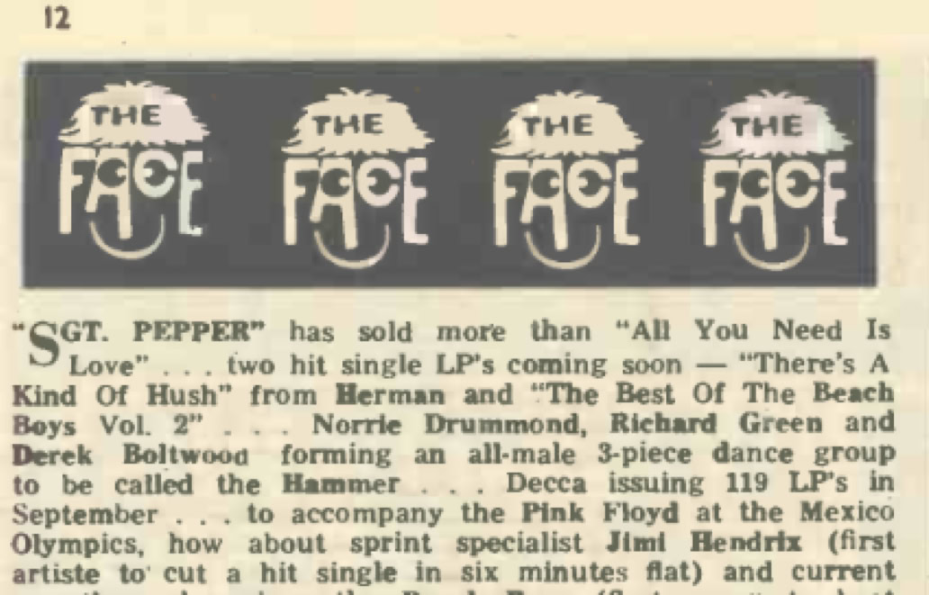 «Final groups were about to be signed on Tuesday …», Disc & Music Echo, 2 December 1967.
