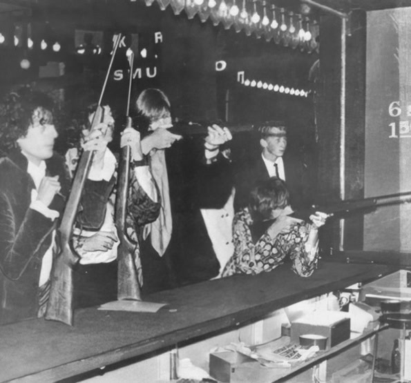 PHOTO SESSION | 12 September 1967 An impromptu photo session is organised at Tivoli Park Responding to a request from the band, journalists from Børge, Denmark's leading adloescent newspaper, took the Floyd to the famous Tivoli amusement park. Three journalists from the magazine and Andrew King went to the park to take photos of Pink Floyd. There was an incident on one of the rides when Rick and Andrew were pushed around.