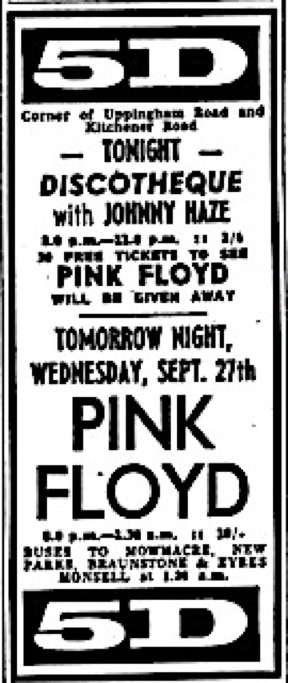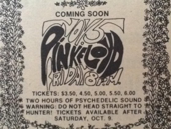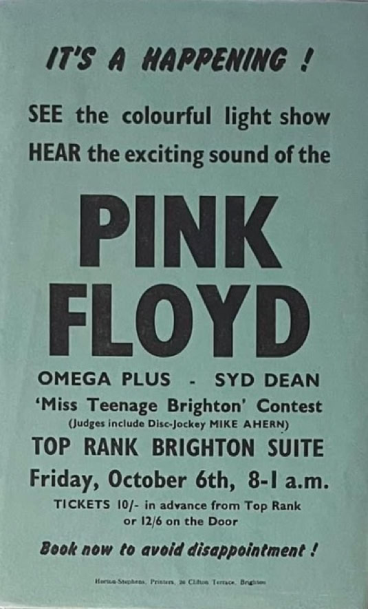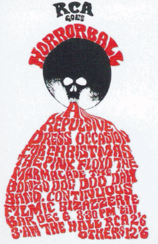 CONCERT DATE | 6 December 1967 « Horror Ball », Royal College of Art, Kensington, London, England David Gilmour was in the assistance. It seems it was asked to join the band after this gig.