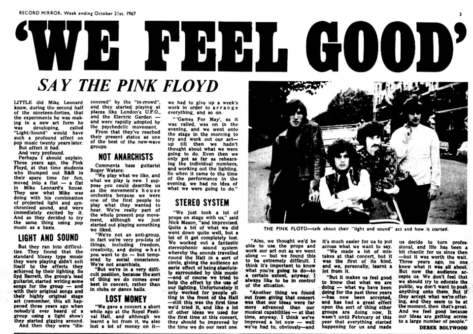 «Floyd’s lights and noise are killing pop», Melody Maker, 16 December 1967