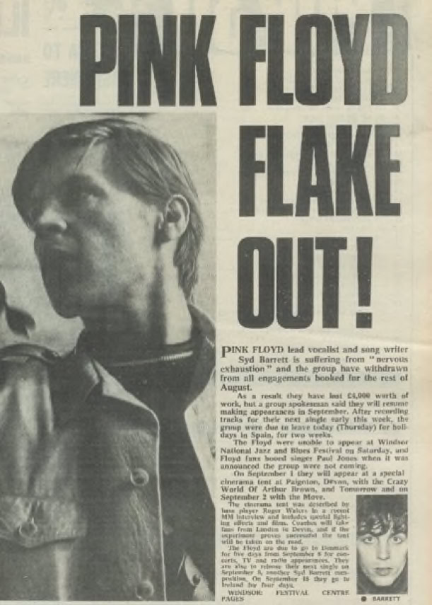 PRESS MENTION| Mid-August 1967 The « nervous troubles » of Syd become related in the press