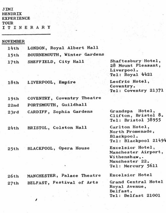 MISCELLANOUS | Late August 1967 1st September 1967, the band is planning a TV-tour in Europe late of the year. This will be post-poned early 1968 since the band agreed to join with Hendrix to his British winter tour.