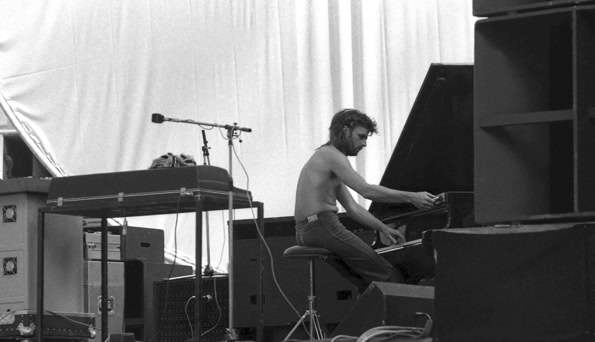 Je suis bien loin de la scène, même si le fait que le public restera assis ou même littéralement vautré pendant tout le set permet une vue bien dégagée sur la grande scène où officient Waters, Gilmour, Wright et Mason parmi ce qui me semble alors une montagne de matériel. Après une très longue intro inconnue (je connais pourtant sur le bout des doigts la discographie du Floyd), on attaque les choses sérieuses : Echoes, l’un de mes morceaux préférés de toute la déjà longue discographie du Floyd. Pourtant, j'ai du mal à me laisser emporter par la musique comme j’y parviens pourtant si facilement dans l'intimité de ma chambre de lycéen avec ma modeste chaine stéréo de lycéen : c'est que le son est mauvais, pas assez fort, confus, pourri par cet espace si peu adapté aux belles émotions que le groupe sait (savait ?) faire naître. Je découvre donc du coup que la malédiction de la musique que j'aime, en ce milieu des années 70, c'est d'être reléguée honteusement dans des lieux qui n’ont vraiment rien d’hospitalier, ni pour la musique, ni pour les spectateurs, traités systématiquement comme du bétail.