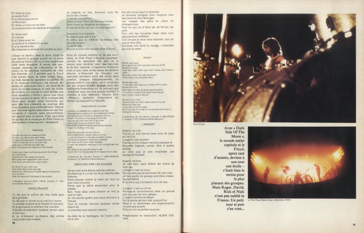 Jamais, pourtant, on ne verra l’organiste prendre les rênes de l'équipage, les commandes de ce nuage qui nous emporte tous. Rick Wright ne donnera pas de ces longs et délicats solos, comme il le faisait autrefois, ces envolées qui créèrent le «Sound» Pink Floyd. C'est regrettable, même si Gilmour offre trois, quatre chorus magnifiques dans le même morceau. Passage à vide, simple évolution ? De toute façon, il faudra attendre la version définitive, celle du disque (dans six mois) pour juger.