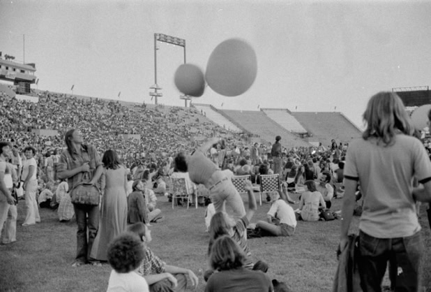 «Early in 1975, the ads for the forthcoming Pink Floyd concerts at The Cow Palace in San Francisco appeared in the San Francisco Chronicle. Scraping together every last penny I could, I bought as many tickets to both nights as I could afford. Pink Floyd were by far my favourite band ever since a friend played One of These Days for me back in 1971. Now I was finally going to get a chance to see them. Both days I arrived with my friends at One in the afternoon for the 8pm show. (I had to be right up front!) Fortunately, there was a small line of great people ahead of us and we enjoyed the “trip” until the show started. The fog slowly creeping down on us from San Bruno Mountain was a nice effect also.