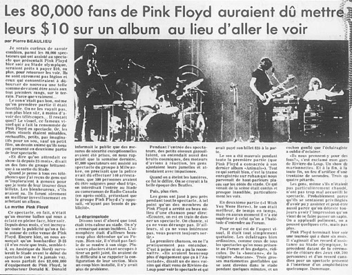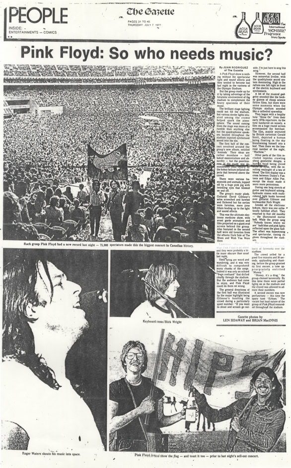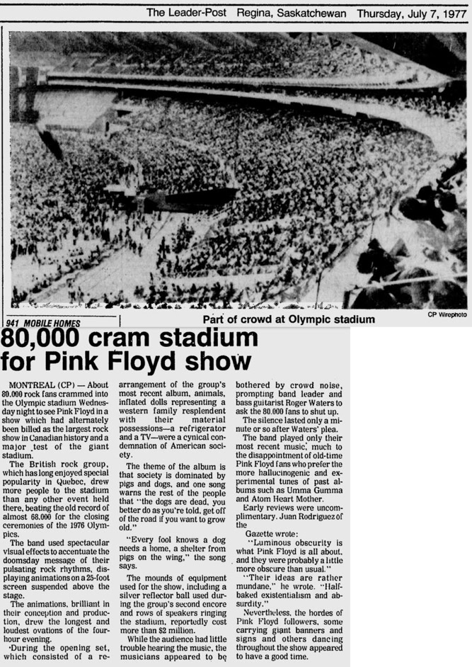 « Part of crowd at Olympic stadium 80,000 cram stadium for Pink Floyd show », The Leader Post, 7 July 1977.