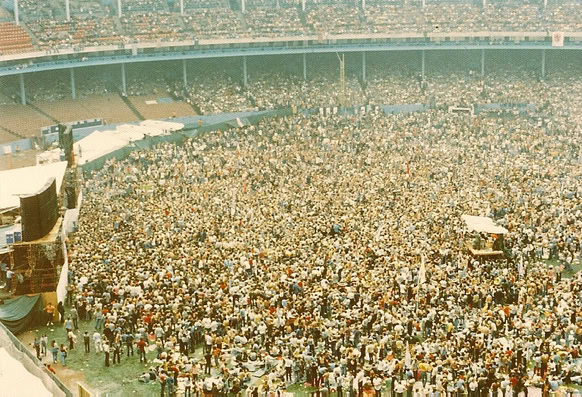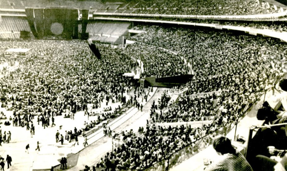 The Radio-Canada station dedicated a special radio show to this historical gig. The journalist Pierre Beaulieu expresses his disappointment and the gigantic aspect of the concert and especially the unprecedented range of audience.
