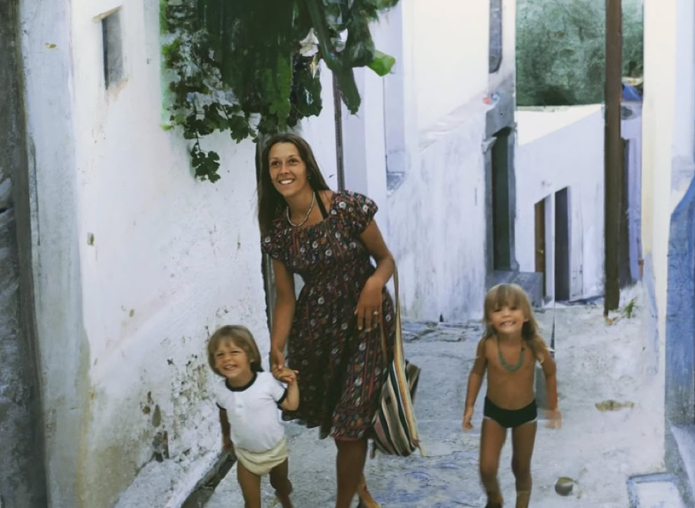 Juliette with his two children: Jamie and Gala at Lindos, Greece.