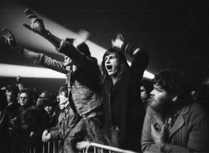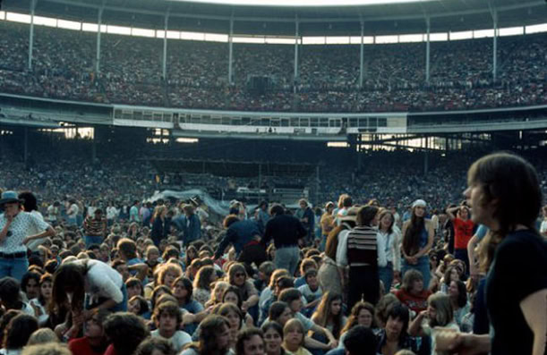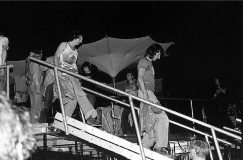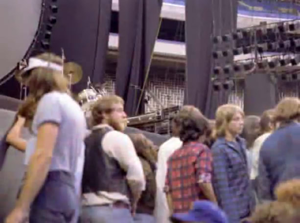 «La moitié du terrain était déjà occupée, alors j'ai dit à mon cousin Louis de tenir la manche du jacket que j'avais autour de la taille. On s'est mis à marcher à travers le monde, comme si on allait retrouver quelqu'un, parce que je savais que lorsque les lumières fermeraient, les gens qui étaient assis se lèveraient et qu'on ne pourrait plus se déplacer. On s'est rendu jusqu'à la bande et quand le show a commencé, en retard de 15 minutes, on était complètement en avant!»