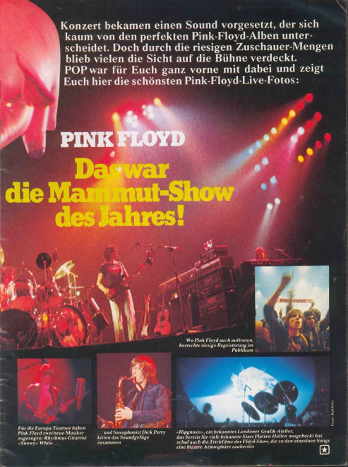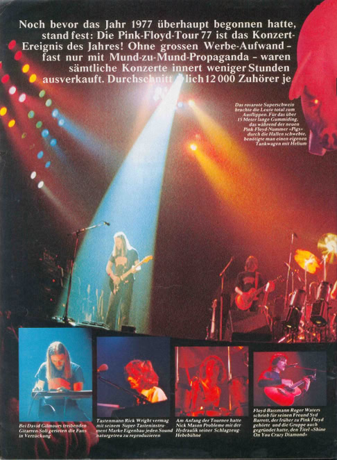 PRESS MENTION |January 1977 The Floyd tour is considered an event that goes well beyond the specialized press. The mainstream German press largely covers the first date of the European tour