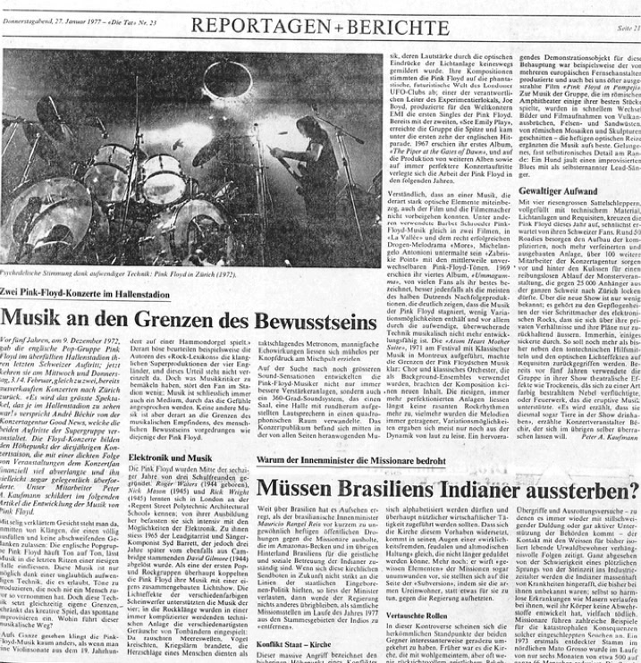 «Pink Floyd in Zürich», Bieler Tagblatt, 11 February 1977.