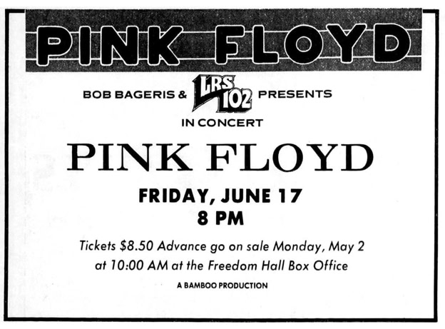 While the Floyd performed the opening half, I commandeered a pay phone in a hall with a hideous echo. Motoring on some speedy yet sharp-focus Hawaiian weed that just arrived in town that week, I started shouting out sentences from notes: «This was the ultimate electronic medicine show. ... Luminous obscurity is what Pink Floyd is all about, and they were probably a little more obscure than usual last night» I barked through the din. Cupping one ear, my voice rising to be heard over the noise, I hadn’t noticed a crowd of fans gathered to hear what the critic had to say. When I finally looked up, I was horrified at being booed by bleary-eyed, messianic Floyd fans on magic mushrooms, speed, pot and beer, sweat pouring off their faces as they gave me the evil eye while I blurted that David Gilmour’s guitar solos «were formless, mere time fillers leading up to the light and sound effects»