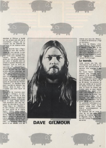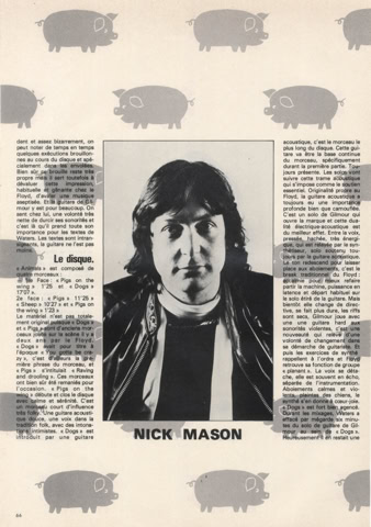 «J’ai écouté «Animals» récemment, et ça m’a impressionné. Je ne les avais pas trouvé aussi bon depuis les premiers disques, les morceaux comme Astronomy Dominé. J’aimais beaucoup ça, à l’époque. Syd Barrett était un excellent auteur de chansons … »