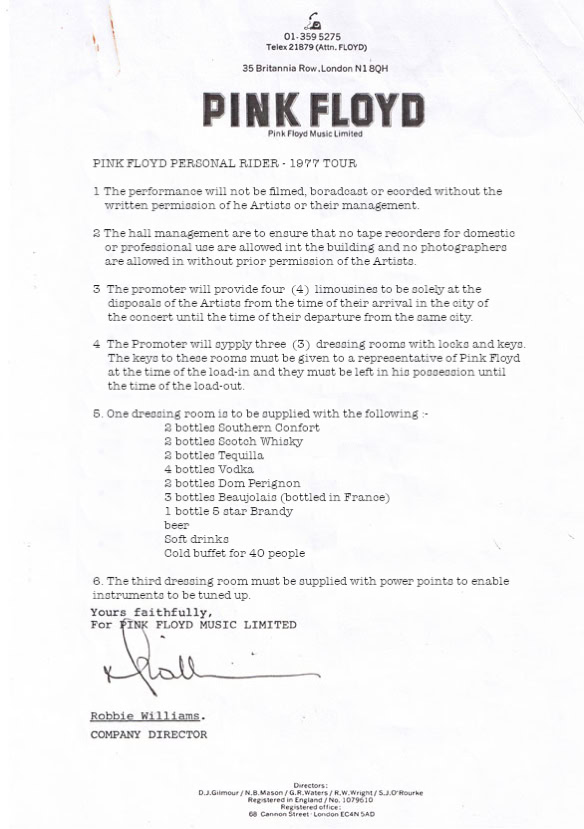 Yours sincerely, Roger Waters » »