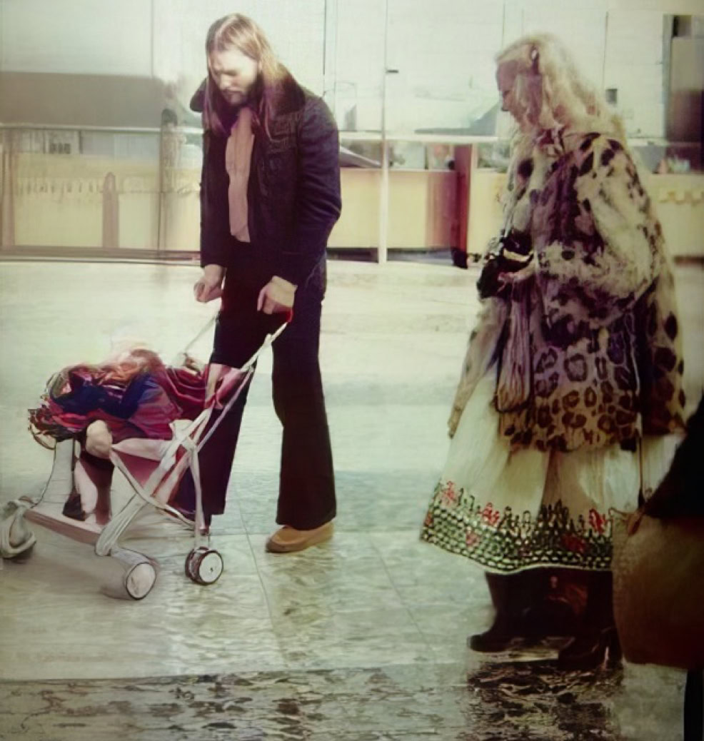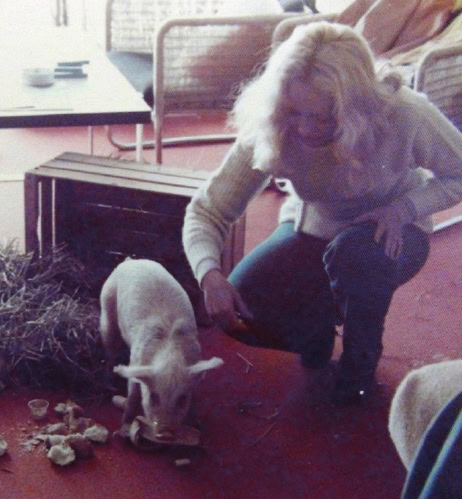 We had young Alice and our Nanny, Jeannie with us. After the first concert with Alice safe in bed, David and I joined the others at a night club party, which the promoters had set-up. When we arrived there in a box was a live baby pig shivering as the loud music surrounded him and the strobe lights revealed his form to us. The promoters thought that it would be funny. I freaked! The band told Warwick to take it back to the hotel and arrange for the farmer to pick it up as soon as possible, which meant taking him to his room at the hotel until it was resolved. The next morning, Alice, Jeannie and I went down for breakfast and gathered as much lettuce, other vegetables, and bits of fruit knowing that Warwick for sure had not thought of that. We waited until we thought it was a reasonable hour to visit and see how the baby pig had fared. We were probably a bit early, but it was around 10:00 a.m. Poor Warwick was extremely hung over and moaned as he opened the door. Suddenly he gasped and shouted, “OH MY GOD!” as he looked back into his room. All the mirrors on the sliding wardrobe doors were cracked. The pig had been snorting at all the other pigs he could see and must have been kissing himself or had an argument to have created such damage. There was excrement everywhere. His room was literally a pigsty!»