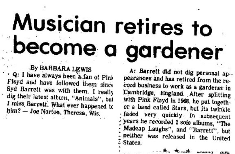PRESS MENTION | Early January 1977, Almost 10 years after his departure and with the Floyd's megagroup status, the Barrett myth continues to grow.