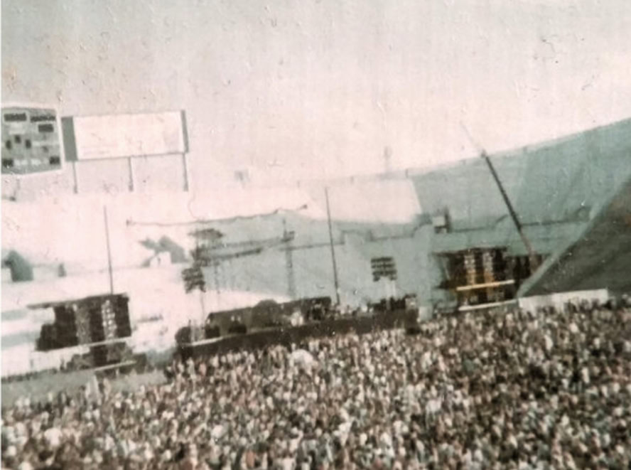 « I can remember not enjoying it much as a show. They'd just finished building this big stadium and the crane was still in there, they forgot to dismantle it and couldn't get it out. I was so unenamoured that I went out and sat on the mixing desk for the encore - that might have not contributed to Roger's mood. I think Roger was disgusted with himself really that he had let himself go sufficiently to spit at a fan »