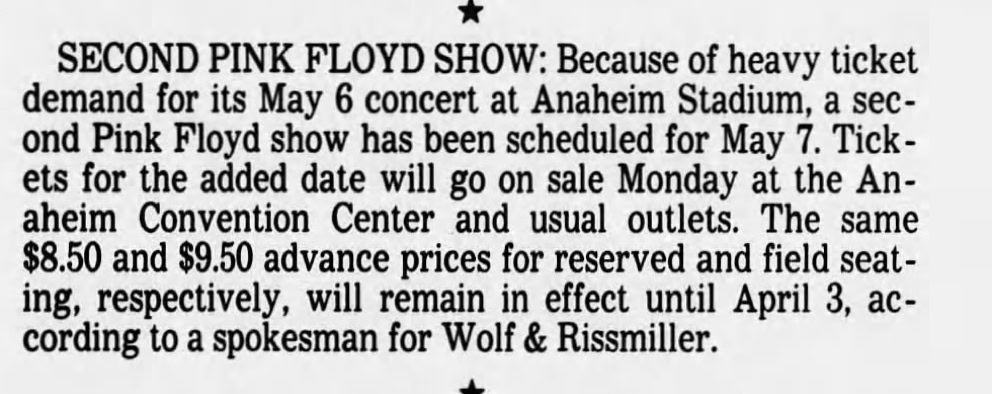 Though the concert had many technical and artistic flaws—as well as several intense and awesome high points—that isn’t to say it was a flop in terms of mass enjoyment and popularity, as witness the incredible ovations. Though the band was not nearly as brilliant as in the past, most people readily overlooked the show’s shortcomings and simply had a terrific time—celebrating the event as much as the music. And perhaps we simply expected too much, for as Pink Floyd so aptly put it: “Us . . . and them . . . and after all . . . we're only . . . ordinary men.”