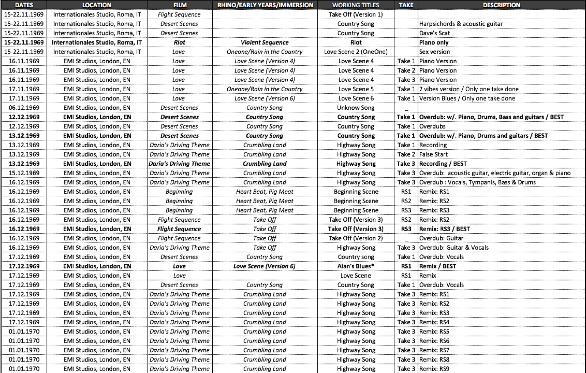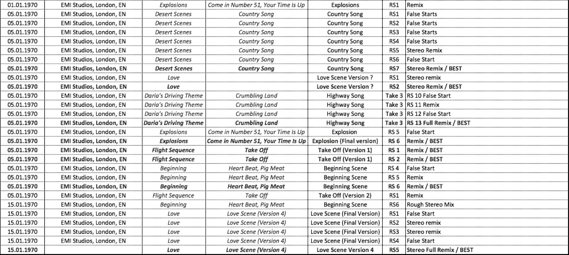 «There was some very good music, there, and although bits of it have been absorbed into the stage act, most of it we leave along. It's essentially mood music and if we were to put it out as a Floyd album people would, I think, feel a little deprived. MGM hold the tapes and I don't know what they might do with it. We worked on the score in Rome, three weeks in a primitive Rome studio working through the nights»